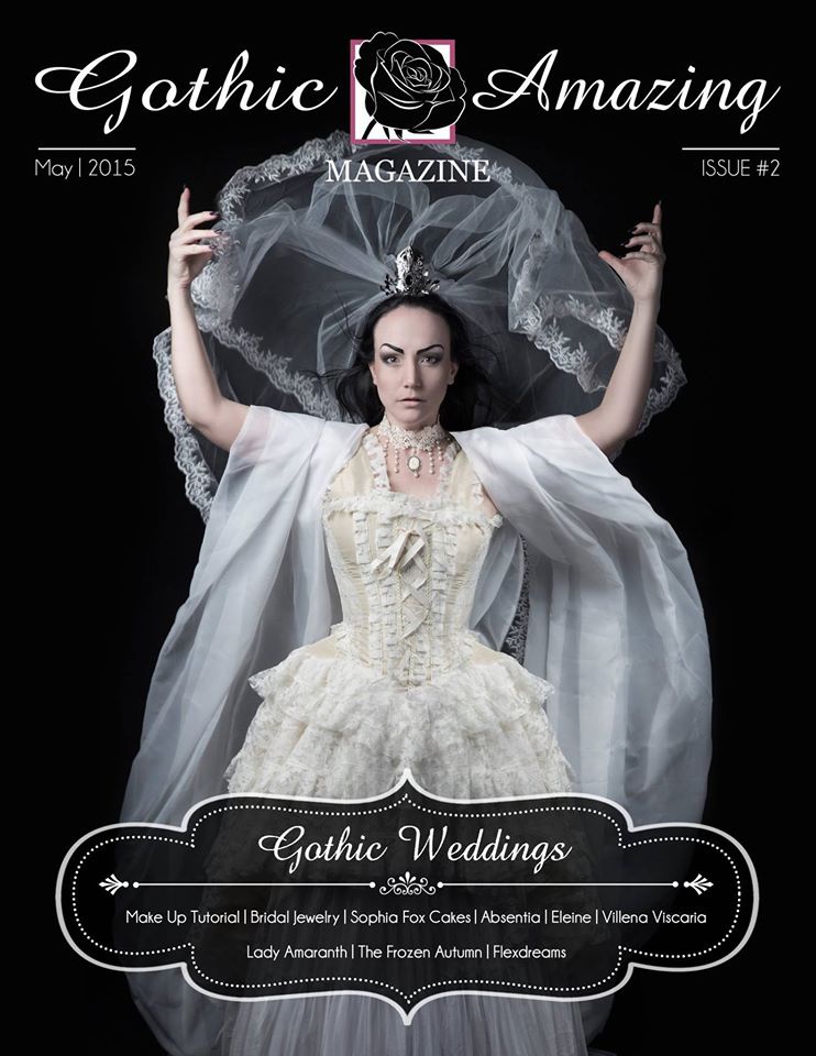 Our second issue published in May is all about Gothic Weddings! The goth icon Lady Amaranth poses as a bride for the cover and gives an interview about her own alternative wedding.
